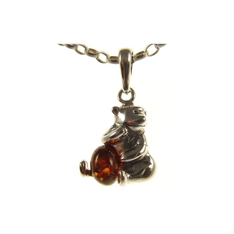 SA Necklaces Baltic amber and sterling silver 925 cognac bear pendant (no chain)
