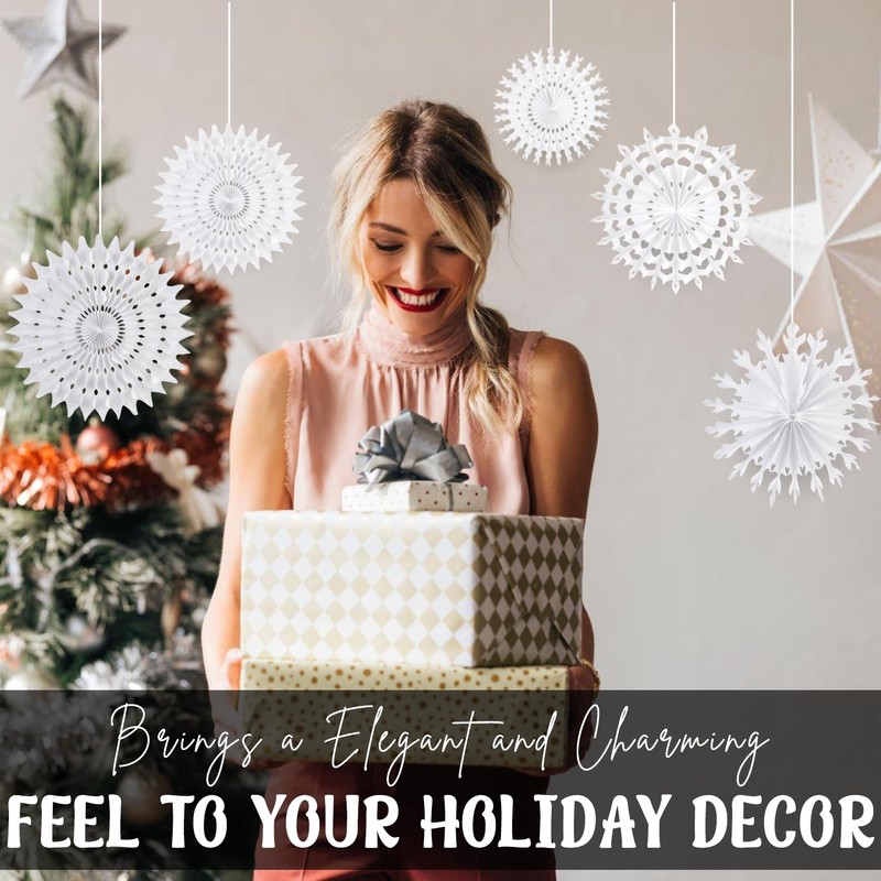 • Exquisite Craftsmanship - Made with premium tissue paper, our Christmas decor is light and won't easily fall from your wall or ceiling. The cutout snowflakes are beautifully and delicately shaped.
