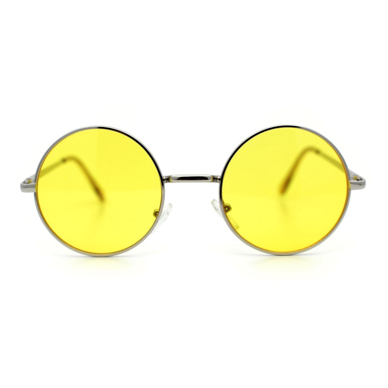 SA106 Summer Color Gradient Lens Circle Lens Round Hippie Sunglasses (silver, yellow)