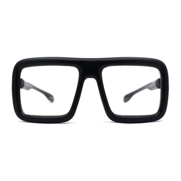 SA106 Thick Bubble Bevel Rim Oversize Rectangle Flat Top Clear Lens Eyeglasses Matte Black