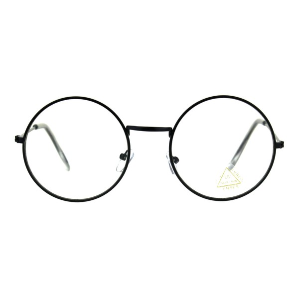 SA106 Ultra Flat Lens Trendy Circle Round Lens Retro Eye Glasses Black