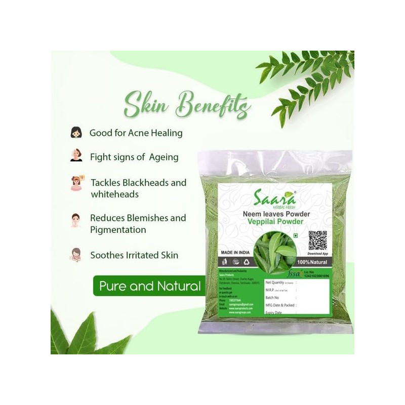 SAARA : Neem Leaves Powder 200g (Pack of 100g x 2)