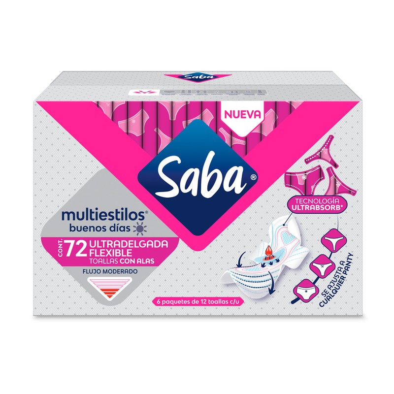 Saba Multiestilos Toalla Femenina Ultradelgada, 72 pzas