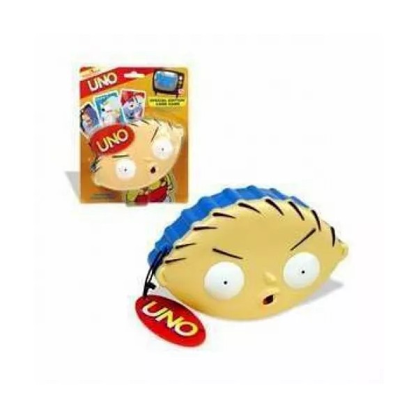 THIS FAMILY GUY THEMED UNO IN THE STEWIE SHAPED CASE IS A MUST HAVE FOR ANY FAN.