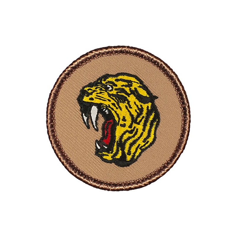 Sabertooth Tiger Head Patrol Patch - 2" Diameter Round Embroidered Patch