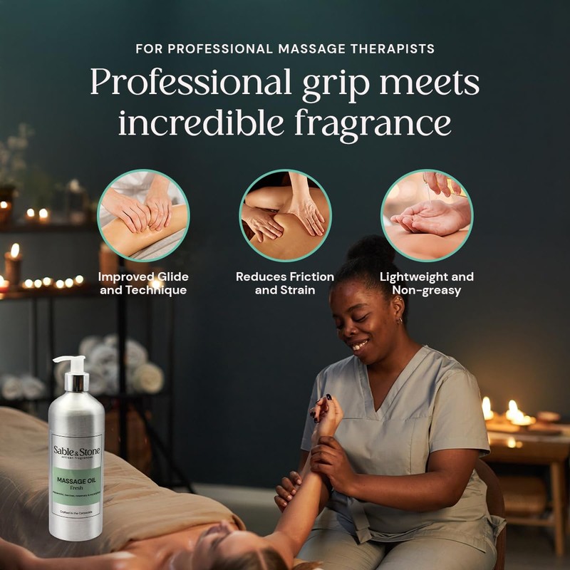 Sable & Stone | Fresh | Massage Oil, Natural Grapeseed Oil Blend with Peppermint and Eucalyptus for Professional & Home Use (250ml)