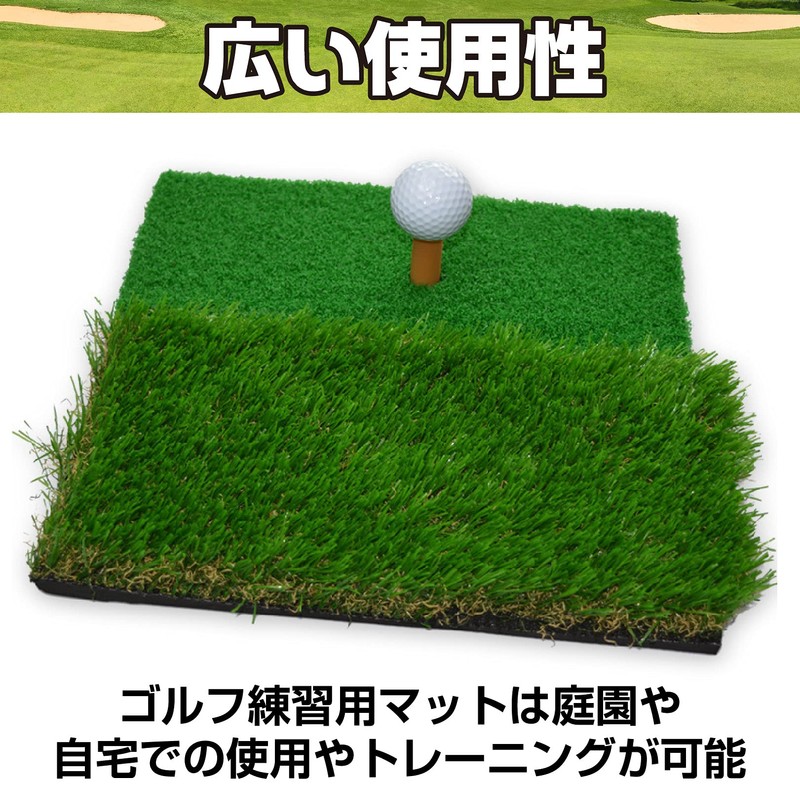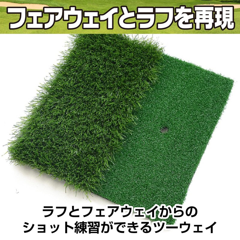 The 2-way mat is 1 piece and 0.8cm artificial turf for rough to shot and approach practice 3.5cm rough turf and 0.8cm turf for shooting from the fairway. Moderate thickness to prevent slipping. Use the approach net and set to create a training effect.