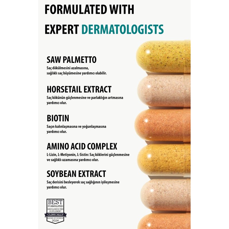 - Bilimle Desteklenen Formül: Dermatologlar ve bilimsel araştırmalar ışığında geliştirilen bileşenler, saç sağlığını güçlendiren en etkili vitamin ve mineralleri içerir.