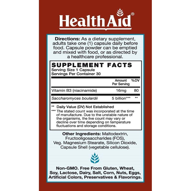 Sacardi Saccharomyces Boulardii – Once-Daily with Vitamin B3 & FOS | 5 Billion CFU | 30 Vegan Tablets | Dairy-Free & Acid-Resistant