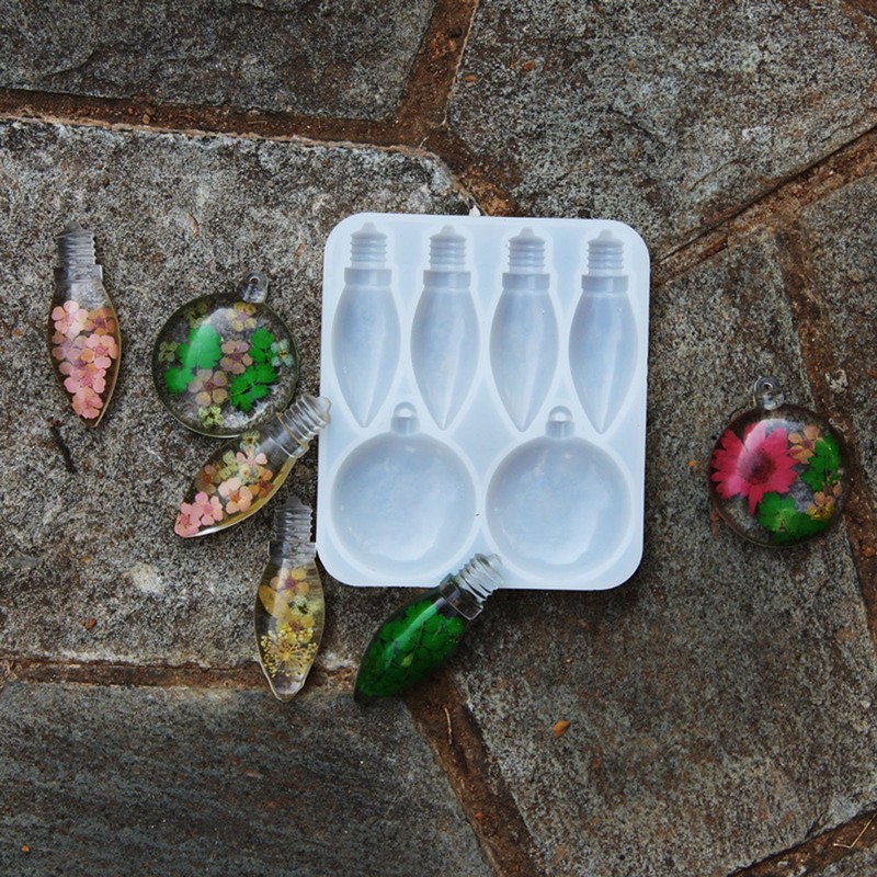 Saccgt Resin Light Bulb Pendant Silicone Mold Christmas Ornament Resin Mold Craft Supply Round Lamp Keychain Pendant Making Silicone, As Pic Shows