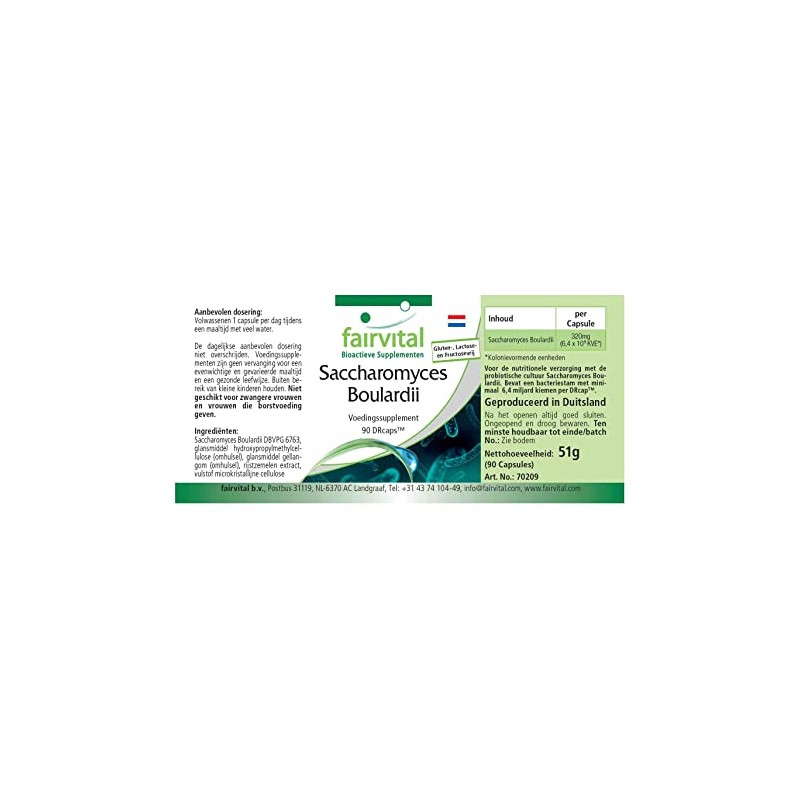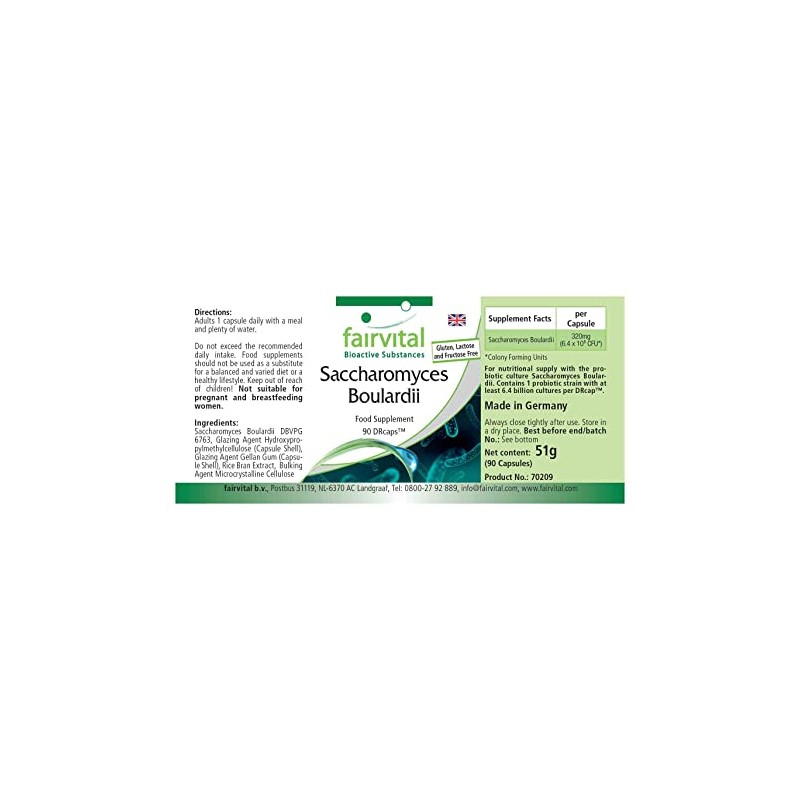 - ✔ Fairvital GERMAN QUALITY: Daily dose: 1 capsule daily contains 320mg Saccharomyces boulardii (6.4 x 10^9 KBE). Highly dosed! Excellent price-performance ratio! In DRCaps for delayed release. Also known as S. boulardii.