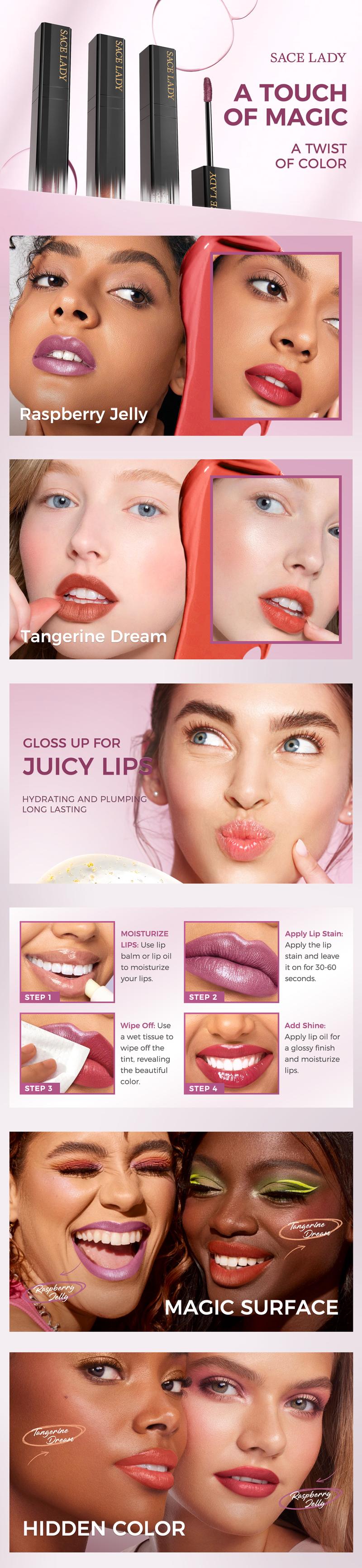 SACE LADY Magic Lip Stain Set,3 Counts/set,Color Changing Long Lasting Waterproof Lipstick,Suitable for All Occasions Lip Makeup, Lip Balms Fall Gift