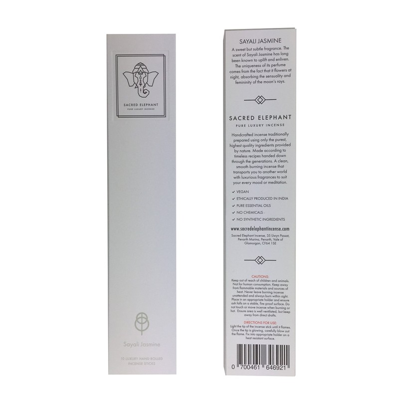 Sacred Elephant | Sayali Jasmine Indian Incense | 10 hand rolled sticks