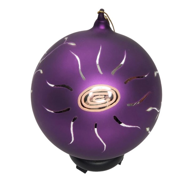 Sacred Season Ball Ornament Sun Trees Blown Glass Hand Painted Purple