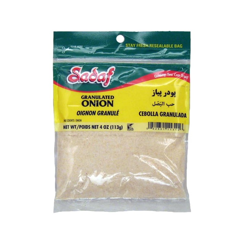 Sadaf Granulated Onion - Dried Onion Granulated for Cooking and Food Flavoring - Onion Granules -Kosher - 4 Oz Resealable Bag