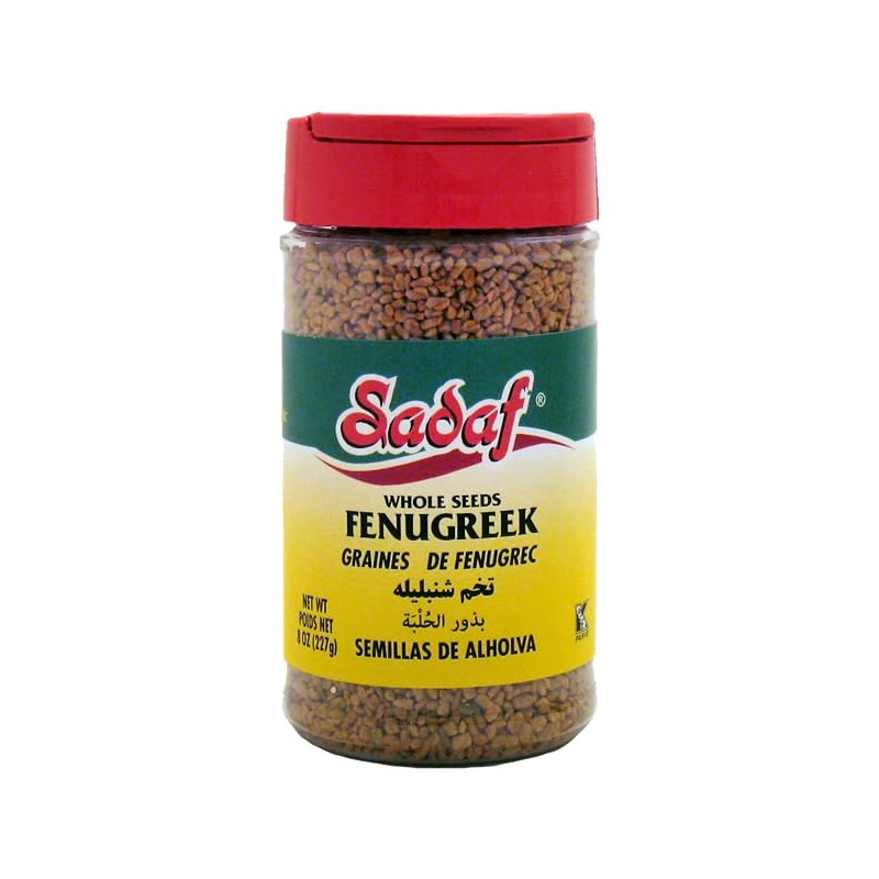 Sadaf Fenugreek Seeds - Whole Methi Seeds for Cooking and Food Flavoring - Ideal for Middle Eastern Cuisine - Fenogreco en Semillas - Kosher and Halal - 8 Oz Bottle with Shaker Top