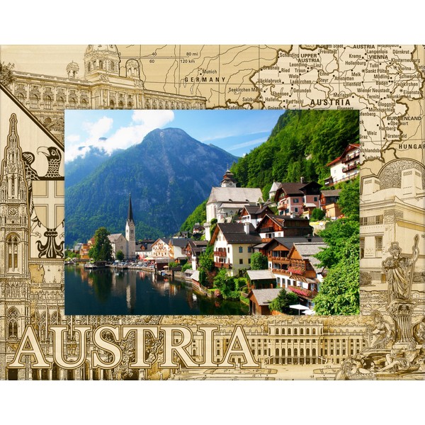 Saddle Mountain Souvenir Austria Germany Laser Engraved Wood Picture Frame Landscape (4 x 6)