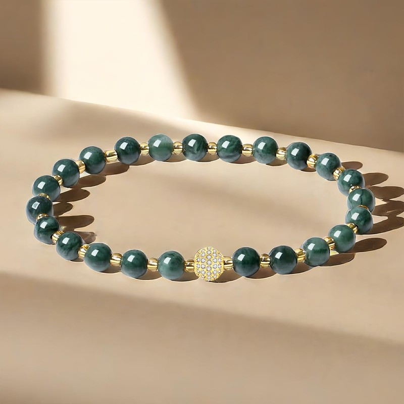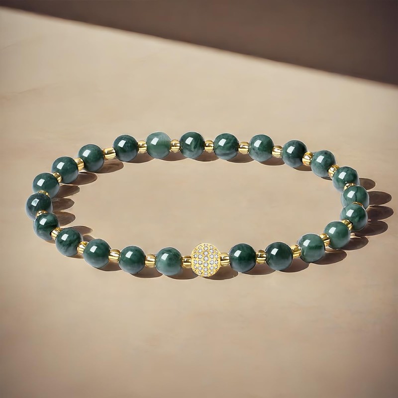 - SaDiao Stretch Bracelets 6MM natural Gemstone with 18K White Gold ball Bracelet