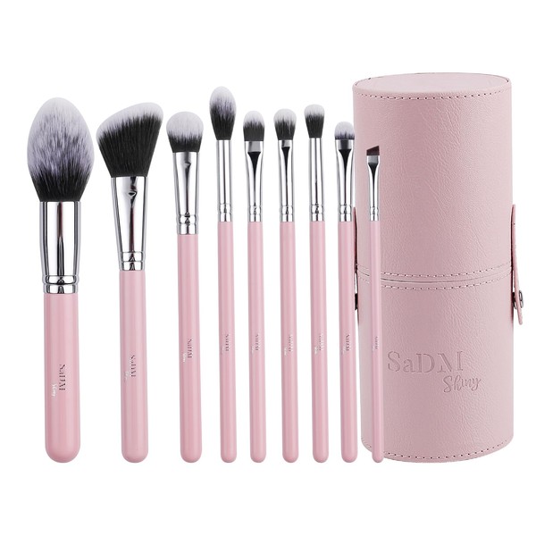 SaDM Shiny 9-Piece Professional Makeup Brush Set with Leather Case – Essential Tools for Flawless Makeup