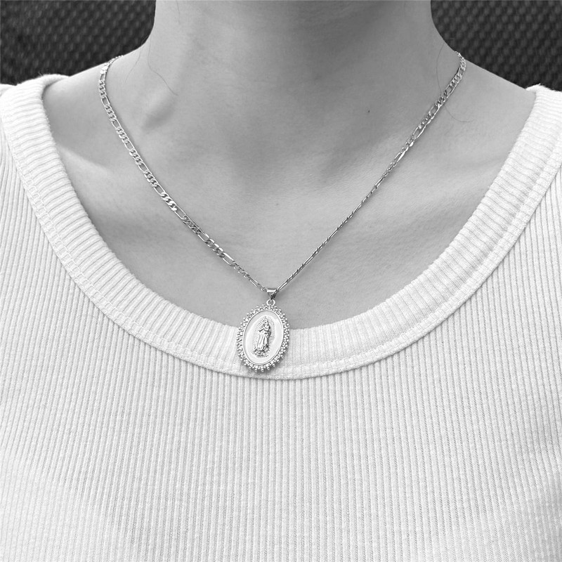 - 【MATERIAL】The virgin pendant is copper made with white gold plating. The Figaro chain is made with high quality 316L stainless steel, and well vacuum electroplating, waterproof and keep color at least one year. Nickel-free, and Lead-free, safe for sensitive skin, not itching, no discoloration or irritation.