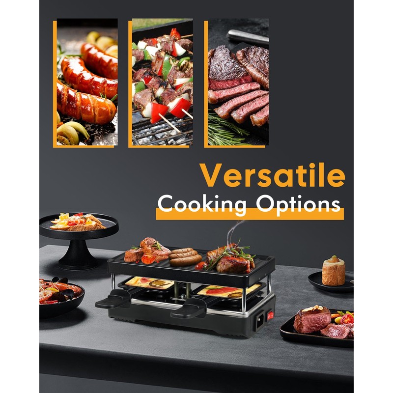 - Intimate Dining Experience: Tailored for two, this raclette grill creates an intimate setting for special moments. Perfect for romantic dinners, date nights, or cherished gatherings with a close companion.