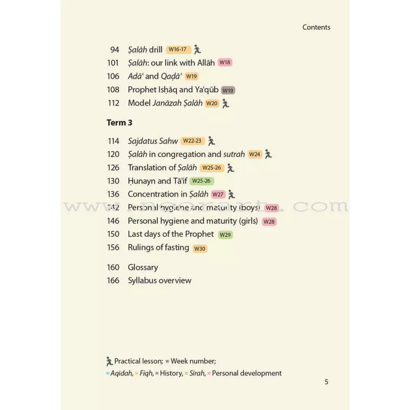 - The book follows a unit-based structure, featuring units such as Essential Knowledge, Essential Beliefs, Fiqh (rituals and rulings), Islamic History, Contemporary Issues, Islam and the Social World, and Spiritual and Moral development.