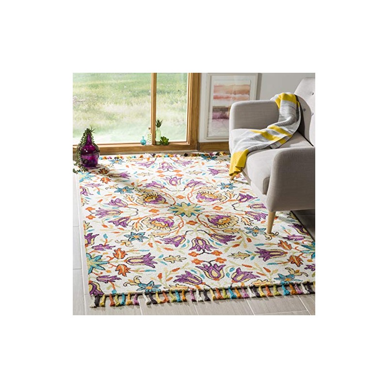 SAFAVIEH Aspen Collection Accent Rug - 4' x 6', Ivory & Purple, Handmade Boho Braided Tassel Wool, Ideal for High Traffic Areas in Entryway, Living Room, Bedroom (APN115A)