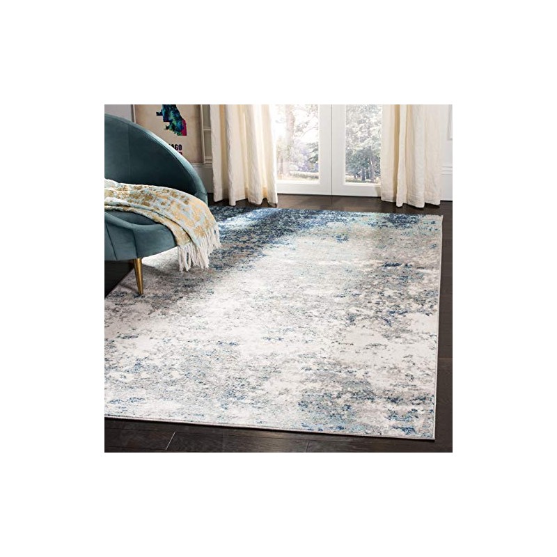 Safavieh Brentwood Collection BNT822F Area Rug, 5' Square, Light Grey/Blue