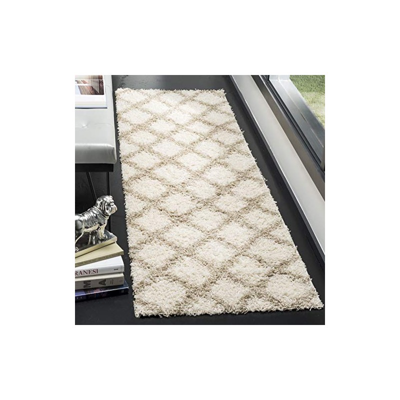Safavieh Dallas Shag Collection SGD258B Trellis 1.5-inch Thick Runner, 2'3" x 8' , Ivory / Beige