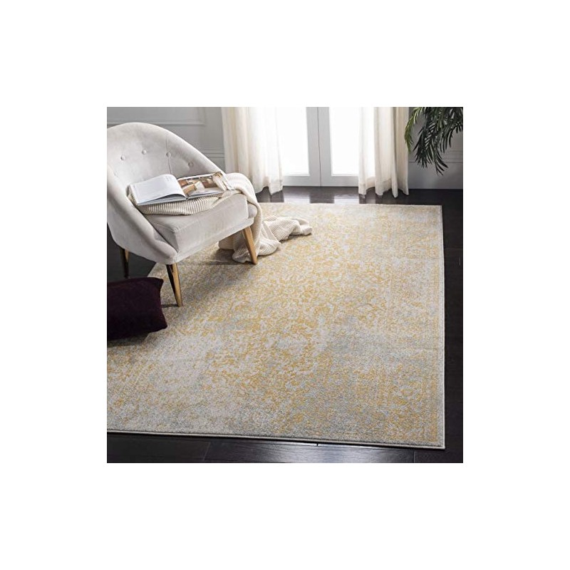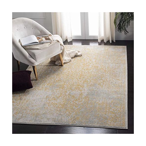 Safavieh Evoke Collection EVK256B Oriental Distressed Area Rug, 6'7" x 6'7" Round, Ivory / Gold
