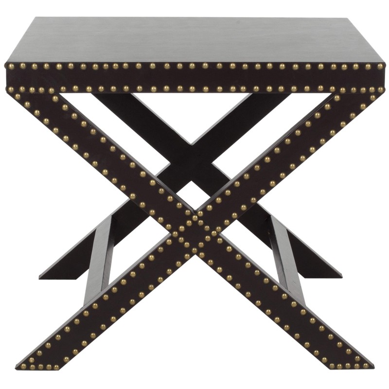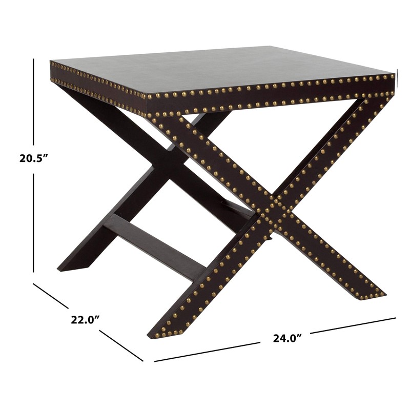 SAFAVIEH Home Collection Jeanine Charcoal X-Shape Studded Nailhead Trim Side End Accent Table