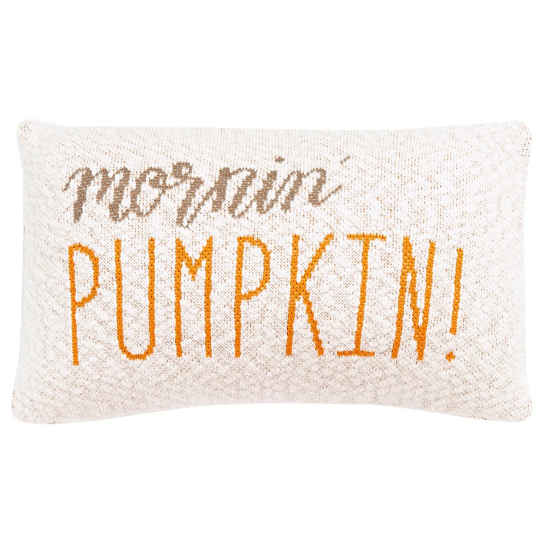- [CHIC DESIGNER DETAILS]: Features soft knit cotton fibers with script reading 'mornin' PUMPKIN!' in rust and brown coloring