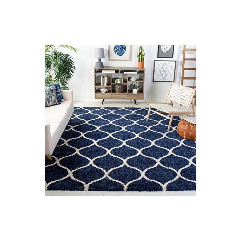 Safavieh Hudson Shag Collection SGH280C Moroccan Ogee Trellis 2-inch Thick Area Rug, 7' x 7' Square, Navy / Ivory