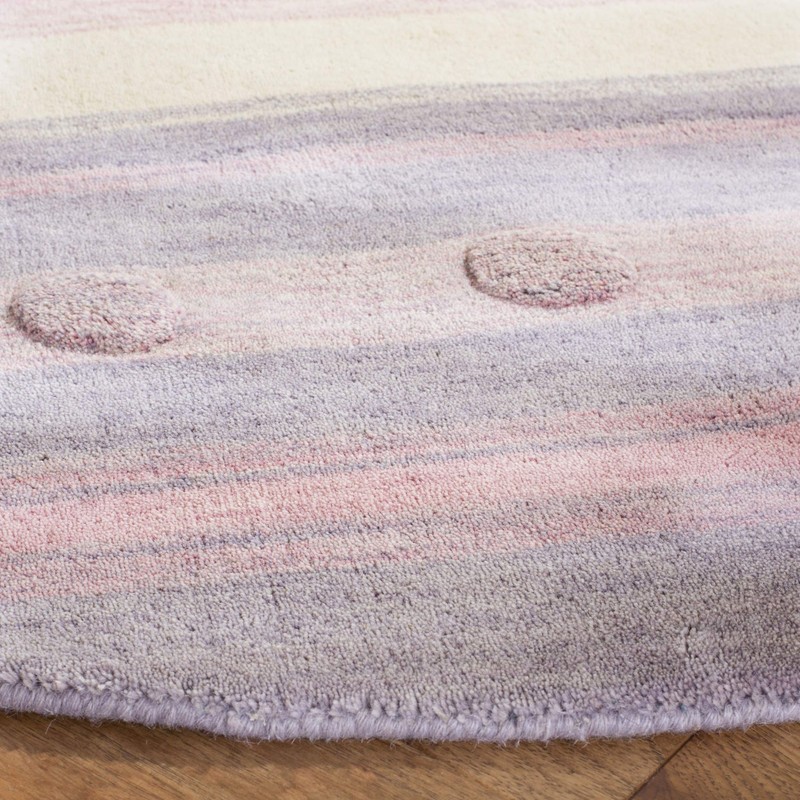 Safavieh Kids Collection SFK801V Handmade Stripe Wool Area Rug, 5' x 5' Round, Light Purple / Ivory