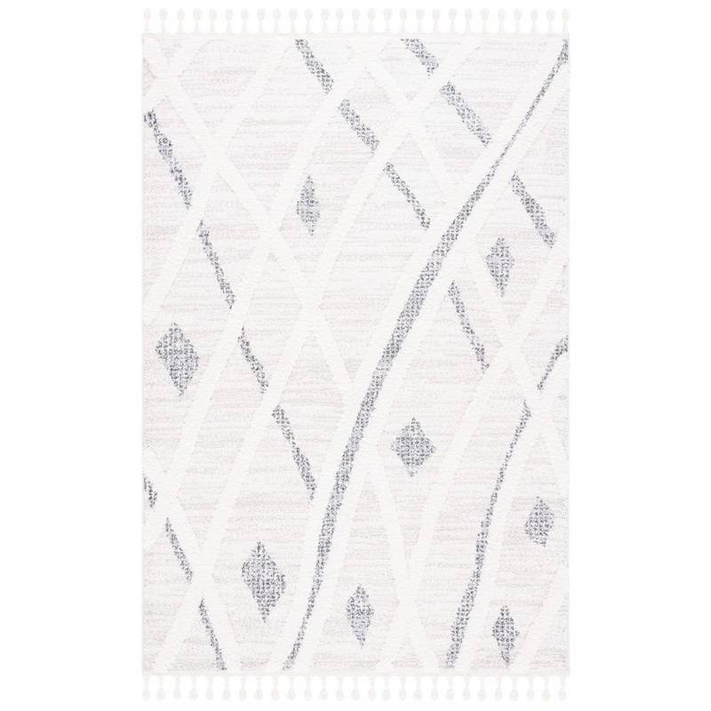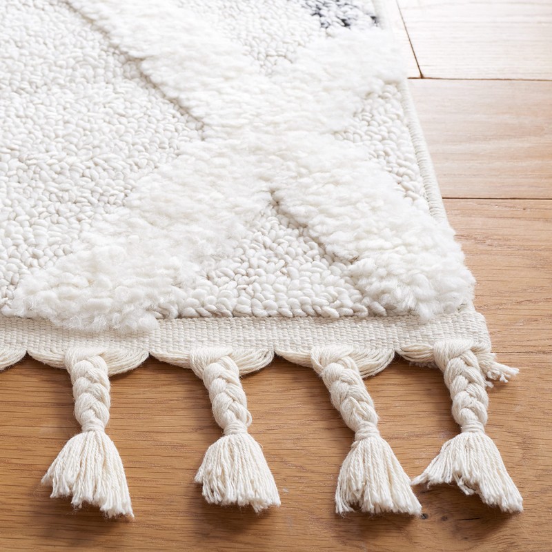 SAFAVIEH Moroccan Tassel Shag Collection Area Rug - 5'3" x 7'6", Beige & Grey, Boho Design, Non-Shedding & Easy Care, 2-inch Thick Ideal for High Traffic Areas in Living Room, Bedroom (MTS638A)