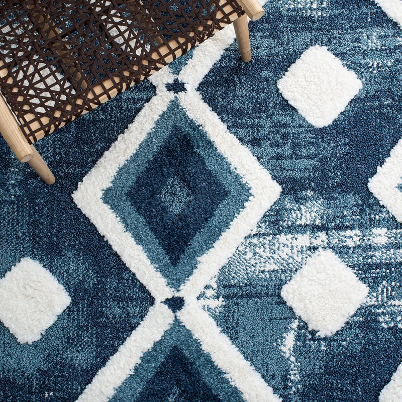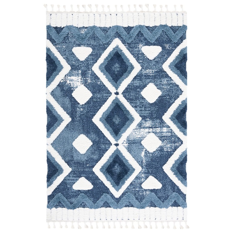 SAFAVIEH Moroccan Tassel Shag Collection Area Rug - 6'7" x 9'2", Blue & Ivory, Boho Design, Non-Shedding & Easy Care, 2-inch Thick Ideal for High Traffic Areas in Living Room, Bedroom (MTS656M)