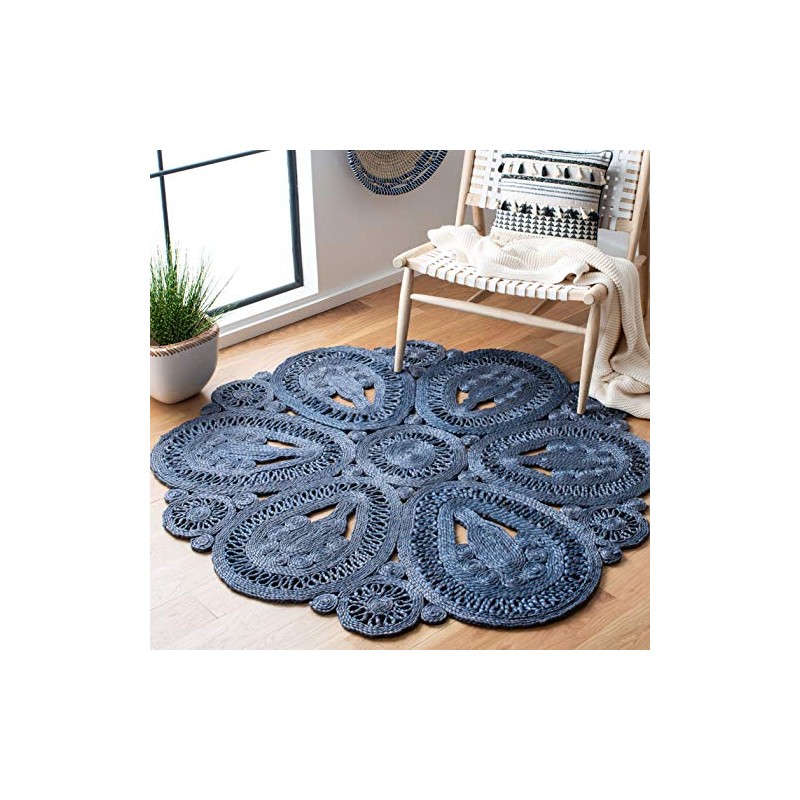 SAFAVIEH Natural Fiber Round Collection 3' Round Navy NF360N Handmade Boho Charm Farmhouse Jute Area Rug