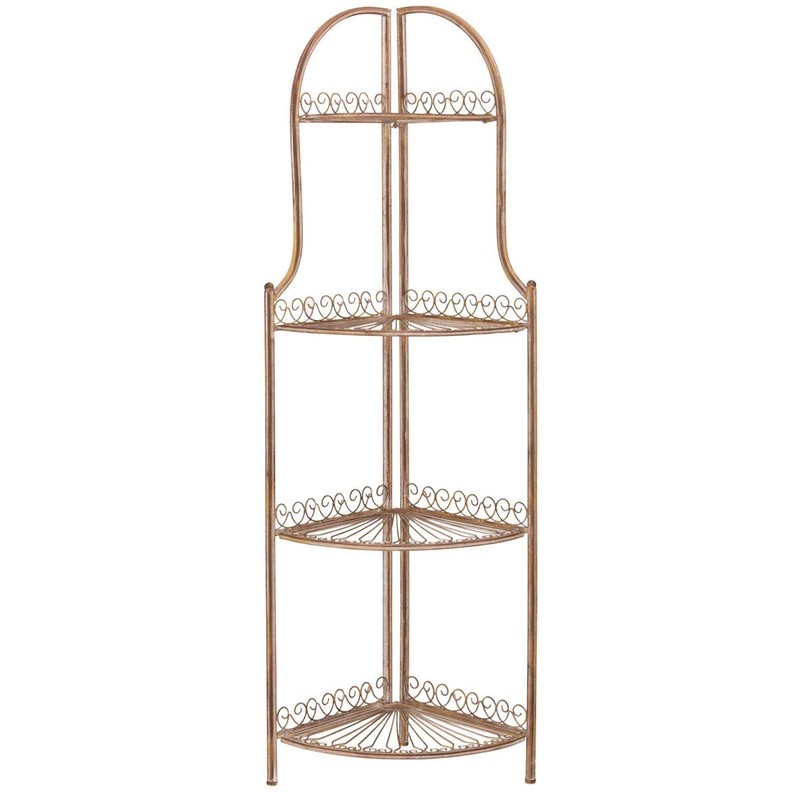 Safavieh PAT5013A Collection Abarrane Rusty Orange Wrought Iron 4 Tier Outdoor Corner Shelf Shelve