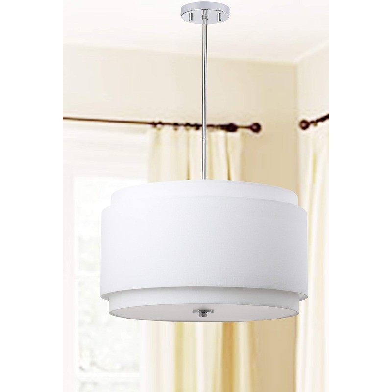 - This White Pendant light features a White shade