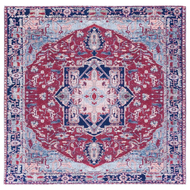 SAFAVIEH Tucson Collection Area Rug - 4' Square, Red & Navy, Persian Medallion Design, Non-Shedding Machine Washable & Slip Resistant Ideal for High Traffic Areas in Living Room, Bedroom (TSN108Q)