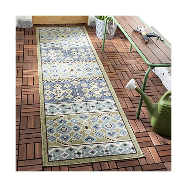 Safavieh Veranda Collection VER093 Boho Indoor/ Outdoor Area Rug, 2'7" x 5', Green / Blue