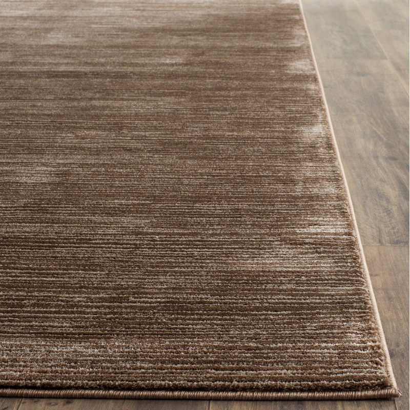 Contemporary understated elegance at its finest, the Vision Area Rug Collection creates a sleek designer look. Perfectly styled to energize today’s urban-chic décor, these rugs dazzle with their silky polyester accents. Featured in a brown tone-on-tone color, this rug’s abstract striations add visual appeal. A refined power-loomed construction ensures precise details and its enhanced synthetic polypropylene and polyester fibers guarantee a virtually non- shedding rug. Due to the low shedding, these rugs hold up in high-traffic area of the homes and look beautiful in the living room, bedroom, home office, dining room, foyer, or nursery.