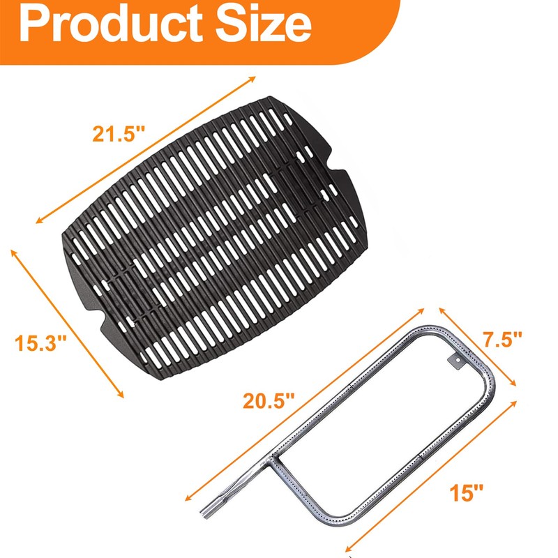 - PACKAGE INCLUDING: Includes 1 Pack Cooking Grate + 1 Pack Grill Burner Tube. Replacement for Weber original part numbers: 7645/7583 and 41862