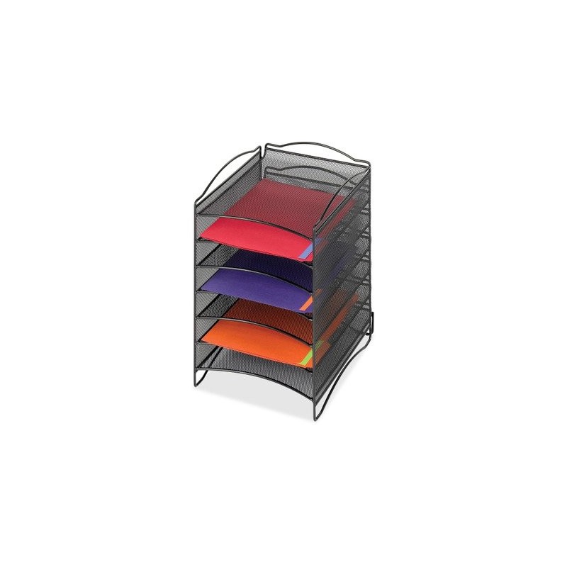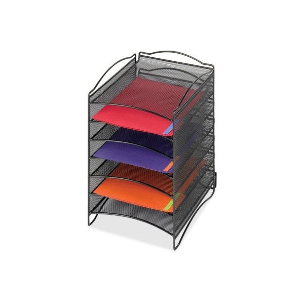 safco Onyx Steel Mesh Lliterature Sorter, Six Compartments, Black