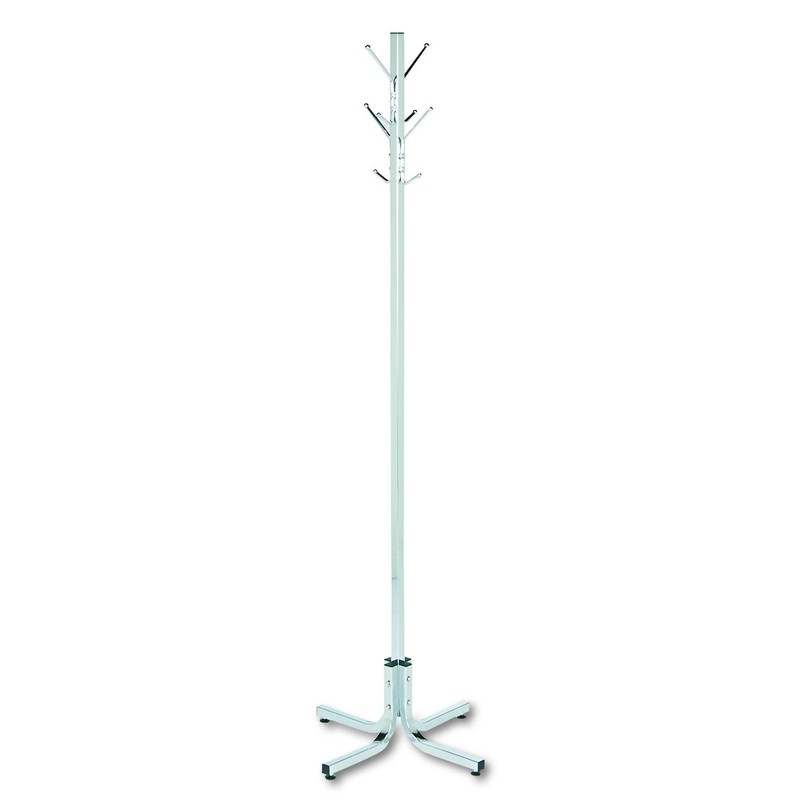 Dress up your guest area. The freestanding costumer features four double hooks that securely hold up to eight garments or 10 lbs. per hook. Steel hooks have ball tips to prevent damage to garments. Wide 21" base provides stability. Steel construction with durable powder coat finish.