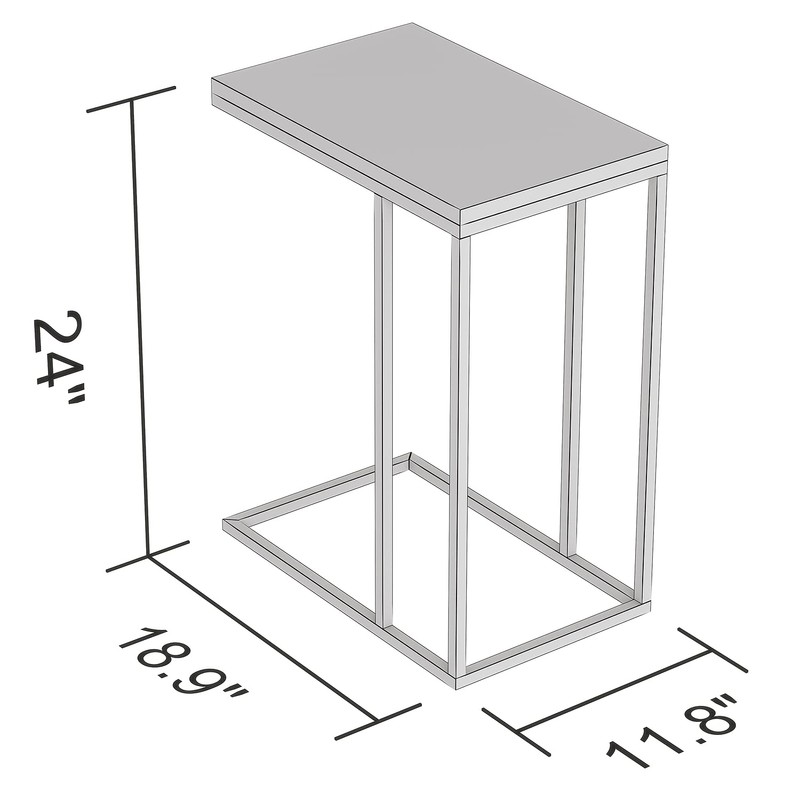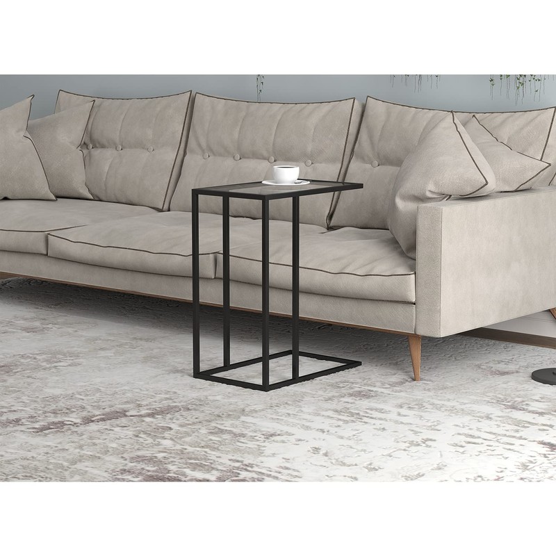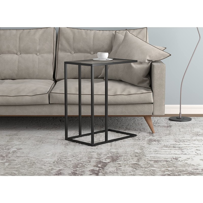 Safdie & Co. Accent Table 19L C-Shaped Glass Black Metal, Clear