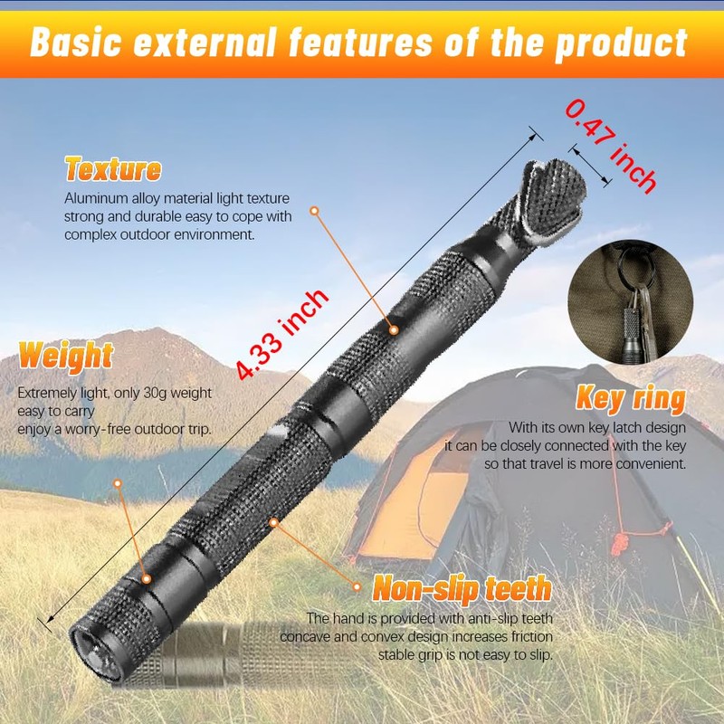 - 【Portable and easy to use】compact and lightweight, can be worn on the wrist or hung on a keychain, and can be accessed anytime, anywhere. It is an essential tool for outdoor exploration and daily emergencies.
