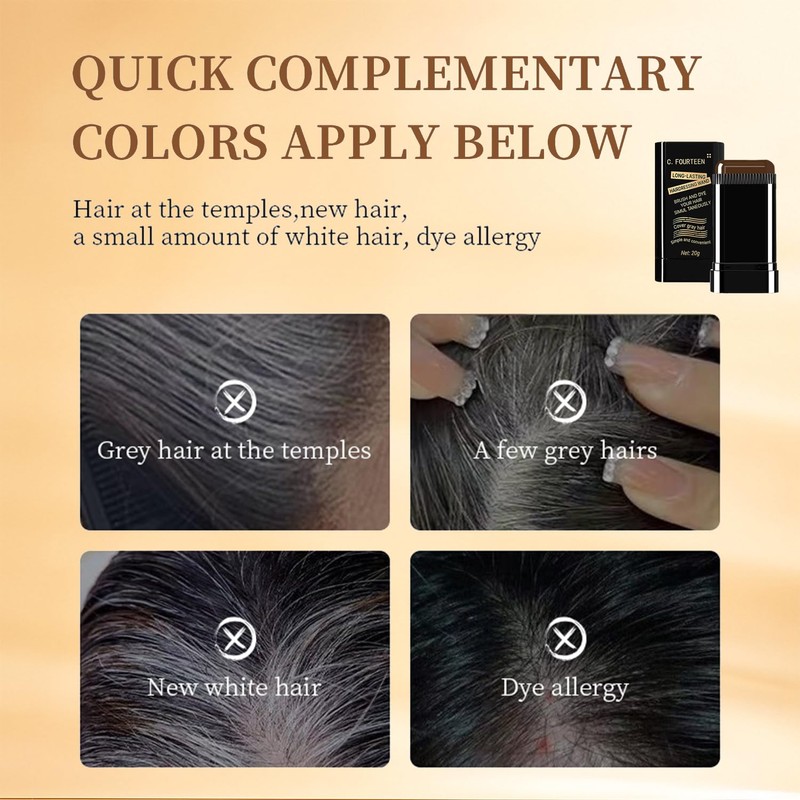 - Portable Color Touch-Up Hair Sticks: This hair dye stick comes with comb teeth, which can be combed and dyed at the same time, and is quick to use. two-in-one for dyeing and combing, and cleverly combines dyeing and combing functions to easily and evenly cover white hair