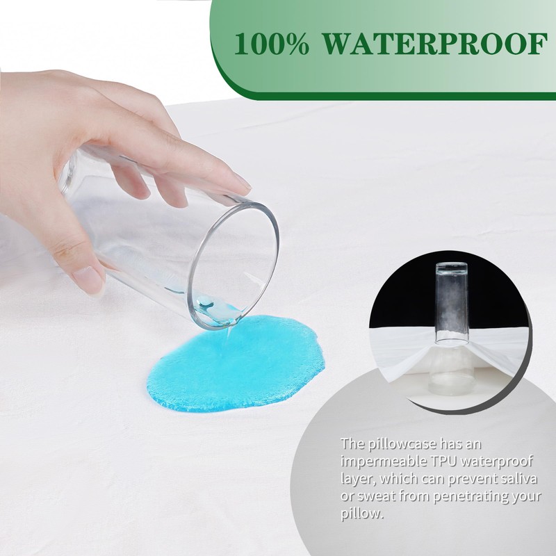 - 100% WATERPROOF: The pillow protector has a waterproof TPU backing, which prevents any liquids, saliva, sweat, stains, etc. Our pillow cover case can always bring you a clean and cozy sleep environment.