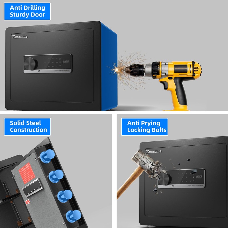 - MILLIMETER LEVEL LASER CUTTING TECHNOLOGY: The EMASME Safe Box is the ultimate solution for keeping your valuables secure and giving you complete peace of mind. With millimeter Level Laser Cutting Technology, 60mm anti-drill door, 1mm anti-pry design, and 28mm anti-theft bolts, our sentry safe offers unparalleled security to protect your most sensitive items from unauthorized access.
